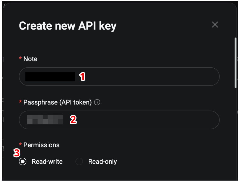 - Enter a Note (e.g., «Automation») to identify your API key.